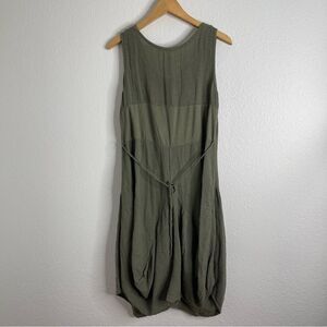 Made in Italy Dress Khaki Green Pure Linen Artsy Boho Lagenlook Balloon Hem