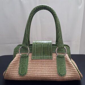 Made in Italy Handbag Straw Woven & Green Crocodile Leather