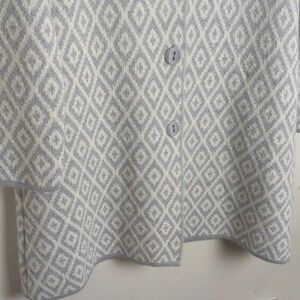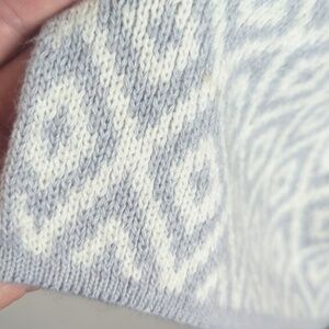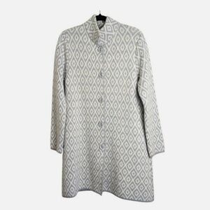 Beautiful tight-knit heavy sweater coat/cardigan with side pockets and high neck. Light blue grey diamond design Made in Italy 70% acrylic 30% wool