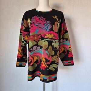 Made in Italy Lambswool Blend Bird Floral Cottagecore Sweater Women Bust 42"