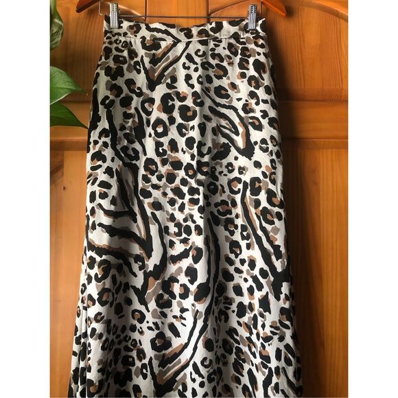 “Made in Italy Leopard Print Midi Skirt – 70% Viscose, 30% Silk” SZ L