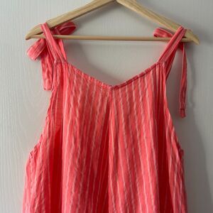 Made in Italy Linen Striped Romper Jumpsuit Coral Pink Tie Strap Boho Resort