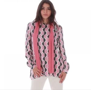 Made in Italy Maliparmi shirt round ground print back button down Large