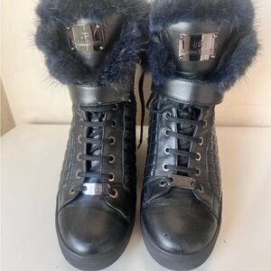 Made in Italy Marino Fabiani Black High-Top Sneakers with fur orthopedic heel