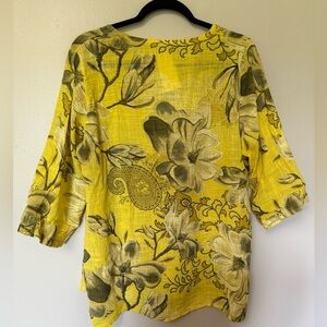 Made in Italy XL gauzy cotton Floral Yellow lightweight Top