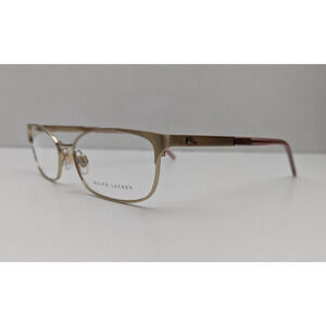 Excellent Condition. No defects. May have a tiny amount of wear and tear that indicates minimal usage. Please check pictures. Frame with demo lenses. Demo lenses may have scratches. Lens width: 55 mm Bridge size: 16 mm Temples size: 135 mm Frame and Temples color: Gold/Light Rose, Satin/Polished. Please note you are paying for the Frame ONLY. The glasses can NOT be returned due imperfections with the demo lens.