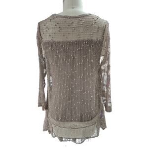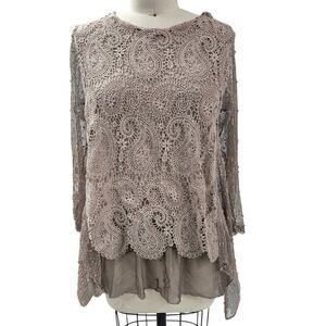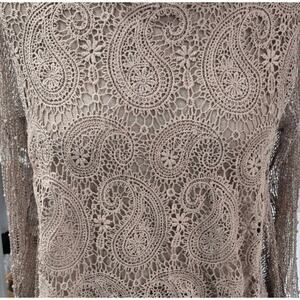 Made in Italy Tan Mocha Paisley Design Mesh Top Shirt Viscose Stretch L