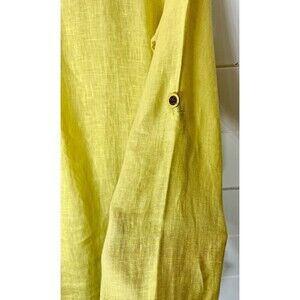Elevate your wardrobe with this beautiful Made in Italy tunic top. Crafted from 100% linen, this high-quality top features a ruffle collar and split hem for a stylish and comfortable fit. The roll tab sleeves and front decorative pocket add to the overall design of the top, making it perfect for any occasion, whether it's travel, casual wear, or work. The top comes in a beautiful yellow color and is available in regular size.