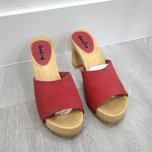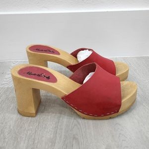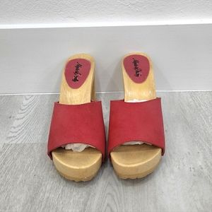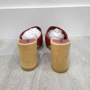 Made in Italy Vintage 1980's Wooden Clog Mule Platform Heel Sandals Red