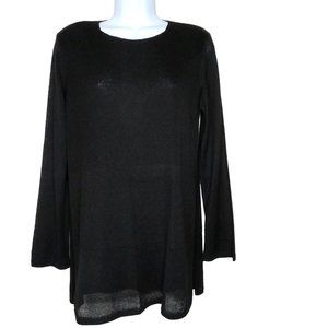 Made in Italy of Benetton Black Pullover Tunic Sweater S Sheer Knit Acrylic