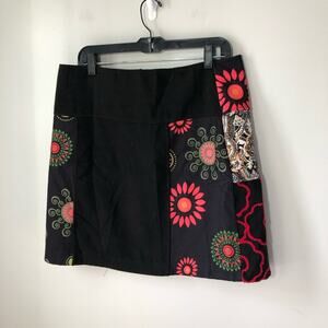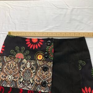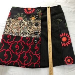 Made in Italy wool blend patchwork mini skirt full button black floral XXL