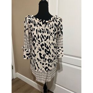 Made in Italy black and white leopard print blouse with ruffled sleeves 3/4 length sleeves