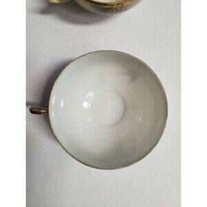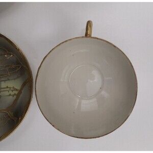 Made in Japan Hand Painted 2 Cups with Saucers Bone China Gold Ivory Grey Birds