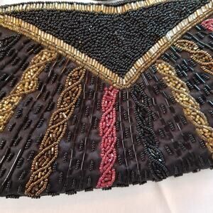 Made in Macau 9x6 inches black , red and gold seed beads excellent condition