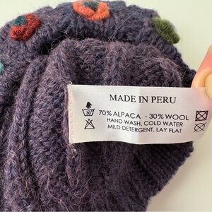 Made in Peru Alpaca Wool Purple Floral Knit Beanie Hat