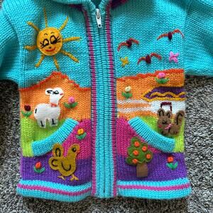 Made in Peru Colorful Knit Full Zip Hoodie Sweater Size 2T Casual Eclectic Cozy