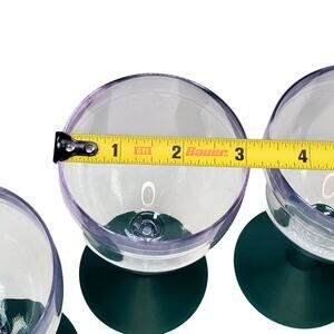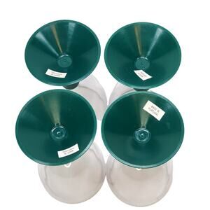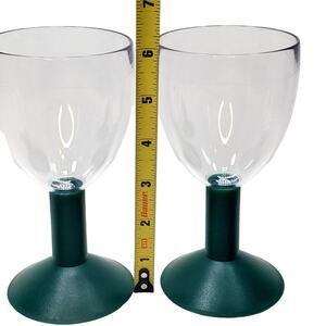 Made in Portugal Plastic Wine Stem Cups Green Clear Plasticware Picnic 6 inches Tall. The cups were preowned and in very good condition. There are no cracks or stains anywhere on them. View all pictures before purchasing. Item will be packed with care. Message me if you have any questions. Browse and save my store for antique and vintage collectibles. Reasonable offers are considered.