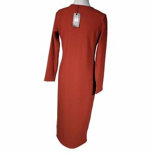 Made of Emotion MOE size XXL Rust Ribbed Long Sleeve Bodycon Dress