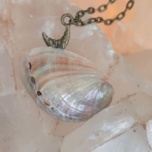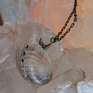 Mermaid in shell necklace my design. Hand made. 13" inches long. Can be shortened on request. Zinc bases chain.