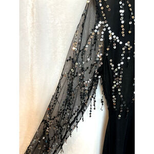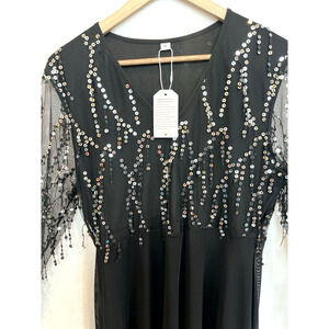 Made with Love Sheer Sequins Formal Maxi Dress Size XL Wedding Mother Bride Black Silver Waterfall Layers New With Tags