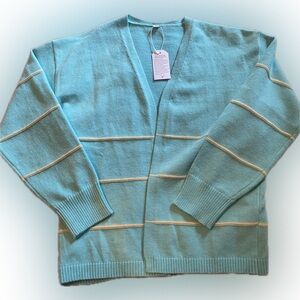 Made with Love by FCT Womens Knit Teal Cream Stripe Sweater Recycled Size XXL