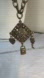 Very cute necklace with a scroll work style medallion which has dangles of a key, lock and heart. More hearts are on the chain necklace.