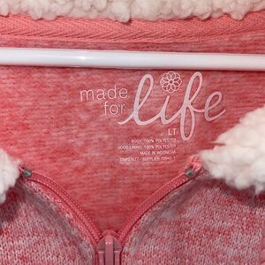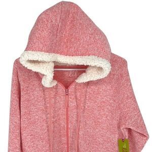 Made For Life Womens Fleece Lined Hood Zip Front Sweatshirt Coral Pink Size Large NWT
