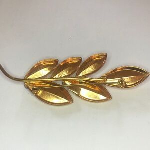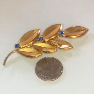 Made In Austria Gold Tone Leaf Branch Pin Brooch Blue Sapphire Stones Vintage