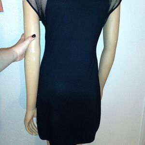 Made in Kenya black mini dress with short net sleeves, size Large