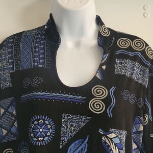 Made in heaven high collar tunic with geometric floral patterns
