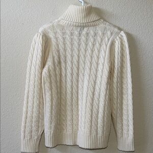 Stay cozy and stylish with this elegant cream cable knit sweater. Perfect for any occasion, this sweater offers both comfort and sophistication.