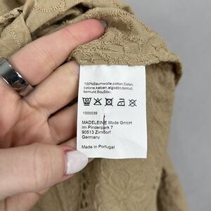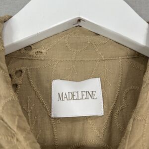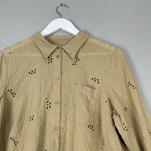 Madeleine Top Womens 14 Tan Eyelet Button Down Shirt Floral Embroidered Cotton