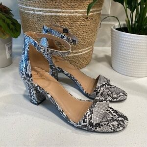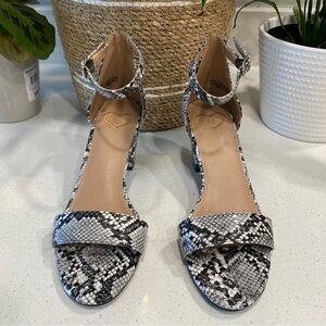 Madeline Carpe Diem Reptile Print Black & White Heeled Sandals Women’s 6.5