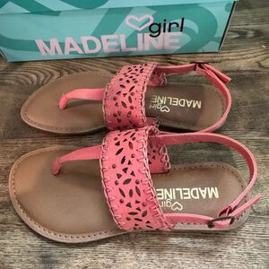 Madeline Girl Sandals Chic coral sandals with intricate cutout pattern. Ideal for everyday style. New in box.
