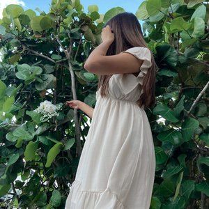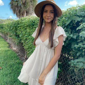We are obsessed with the vintage look of the Madeline Mini Dress! The flutter sleeves, sweetheart neckline, and ruched detail in the back are EVERYTHING.