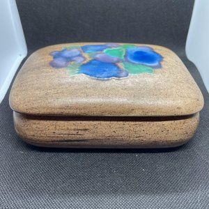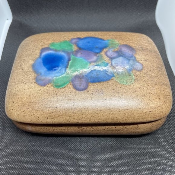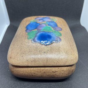 Madeline Originals California Pottery Blue & Purple Flower Trinket Box MCM