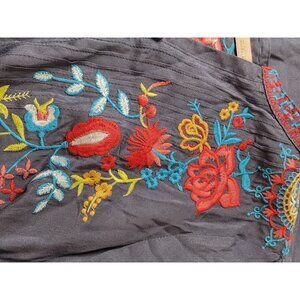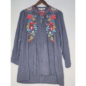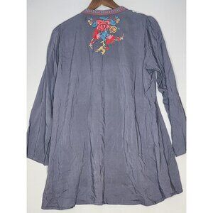 Madeline Sparklestein Gray Tunic blouse Beautiful Embroidery and Cloth buttons S
