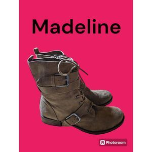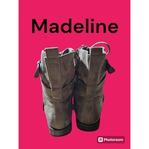 Madeline Stone Brown Buckle Booties Knit Cuffed Size 8.5