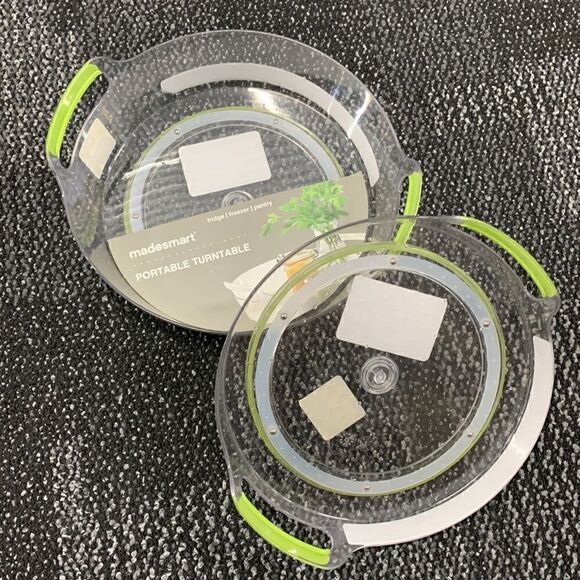 Madesmart Short / Large Portable Turntable, Shallow, Green, Clear Acrylic Bundle