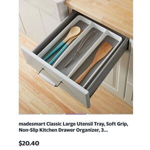 Madesmart Soft Grip Non-Slip Utensil Tray Kitchen Drawer Organizer Gray