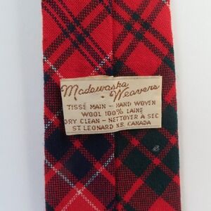 Madewaska Weavers Tie Mens Wool Red Blue Plaid 3" 58" Canada Thin