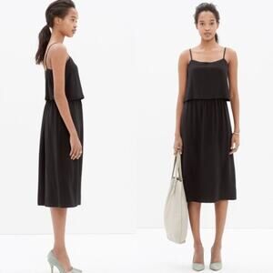 Madewell 0 Camisole Overlay Silk Slip Dress Black