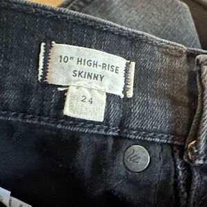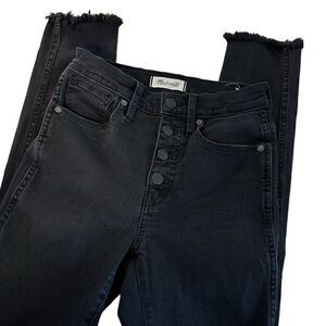 Madewell 10” High Rise Skinny Jeans Black Button Fly Size 24 Raw Cut Ankle Hem