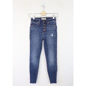 Madewell 10" High-Rise Skinny Jeans Raw Cut Hem Stretch Denim Mid Wash Blue 23