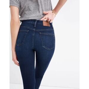 Madewell 10” High-Rise Skinny Jeans in a rich dark wash, size 27. These jeans offer a flattering high-rise fit and a sleek skinny leg that pairs perfectly with anything from chunky sweaters to flowy tops. Made with premium stretch denim for comfort and structure. A versatile closet staple from one of the most loved denim brands. Excellent pre-owned condition.