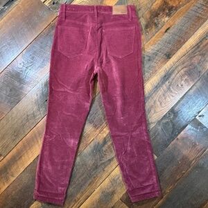 Madewell 10" High-Rise Skinny Jeans Stretch Velvet Dusty Burgundy Women’s 26