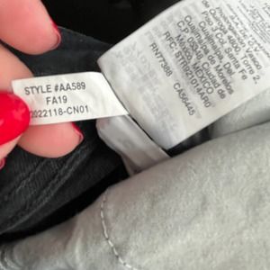 Sit above hip, fitted through hip and thigh, with a skinny leg. Style AA589.