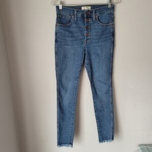 Madewell 10" High-Rise Skinny Jeans in Mackey Wash: Button-Front Edition. Women's size 27. Preowned in good condition. Our 10" high-rise skinny jeans are lean and legs-for-days sexy with cool fluffy hems.