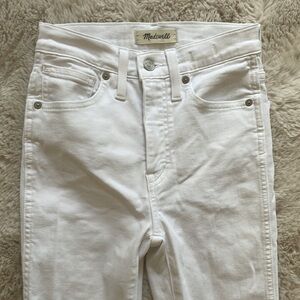 Our 10" high-rise skinny jeans are lean and legs-for-days sexy in specially woven white denim with zero show-through. 10" high rise, fitted through hip and thigh, 9 3/4" skinny leg opening, 28 1/2" inseam. Do Well: We partner with the Better Cotton Initiative to improve cotton farming globally. Premium 90% cotton/8% poly/2% elastane denim from the Cone® mill. Magic Pockets. Machine wash. Import. 5'4" and below? Try our petite inseam; 5'9"-5'11"? Choose Tall. Madewell.com only. This style is also available in a curvy fit. AJ233 Great Condition