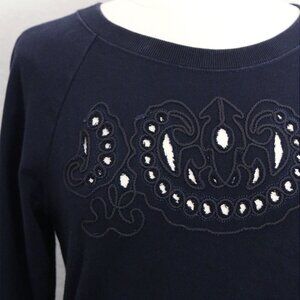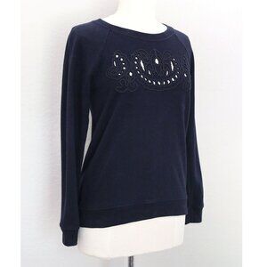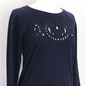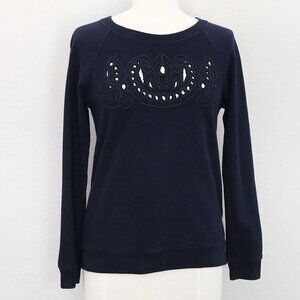 Madewell 100% Cotton Cutout Crewneck Pullover Sweatshirt Navy Blue Size S $72